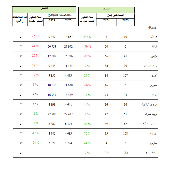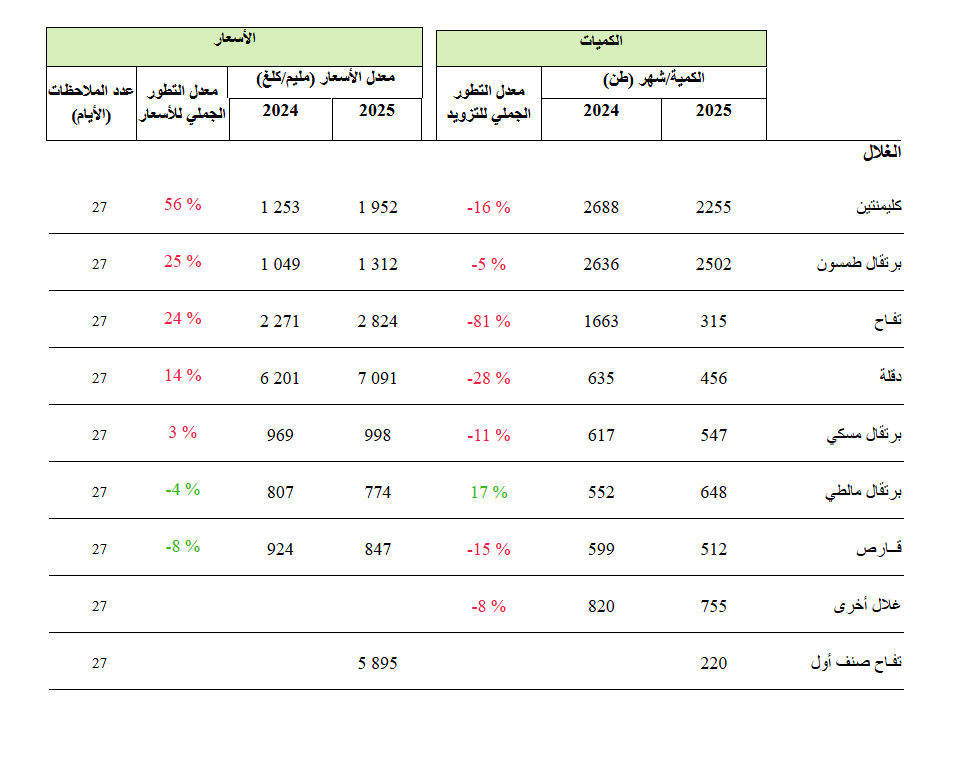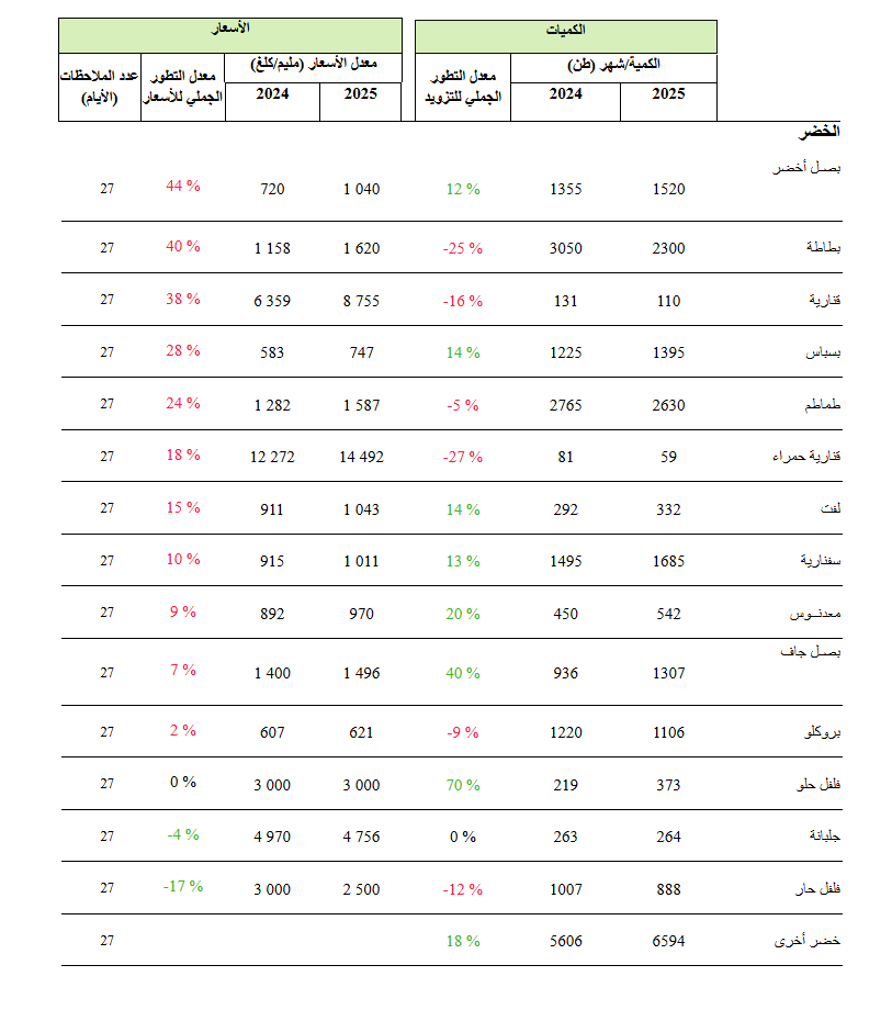 نشر المرصد الوطني للفلاحة اخر الأرقام حول معدل التطور الجملي للتزويد و الأسعار لأهم المواد الأساسية ذات المصلحة الوطنية ببئر القصعة لشهر جانفي 2025. الأرقام كالتالي :